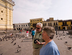 We arrived in Lima, the capital of Peru and spent a couple of days site-seeing. Then onto Cusco, the historical capital of the Inca Empire. After a few days in Cusco we went by bus and train to Aguas Calientes (Machupicchu Town). It is the access point to Machu Picchu. It's a 20 min. bus ride up to the complex. It was overcast and misting when we reached it, adding to the ambiance of Machu Picchu.